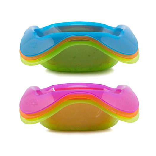 Baby feeding necessities such as feeding bowls and infant cutlery will help babies self-feed. Around the time babies start eating solid food, parents and babies can both benefit from practical gifts like baby bibs, baby-safe utensils, bowls with suction bottoms, and reusable food pouches. Our Heinz Baby Feeding Bowls are available in a handy pack of 3 with non-tip 'wings' to help prevent spills.